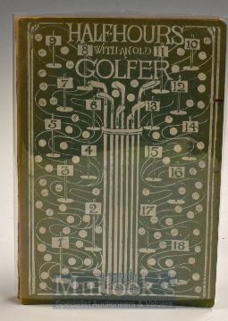 Currente, Calamo (James McCarthy) - “Half - Hours with An Old Golfer” 1st ed 1895 published London George Bell in the unusual original decorative wrappers and spine c/w coloured golfing plates and other illustrations by G.A Laundry - some slight discolouration to the end plates – (F)