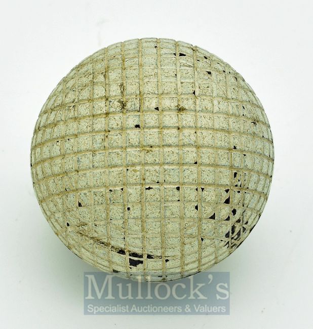 Unnamed Line Cut Guttie Golf Ball with two strike marks to the cover but with good white paint coverage