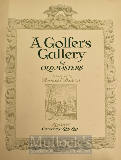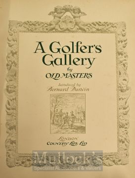 Darwin, Bernard signed and scarce - “A Golfers Gallery by Old Masters” a signed ltd ed no. 279/300 for home market and 200 for sale abroad from 301/500 copies, containing 19pp text with only 8x illustrations out of 18x coloured plates remaining – missing all the individual golfing figures - contained in the original portfolio publ’d Country Life – overall 17.5 x 14”