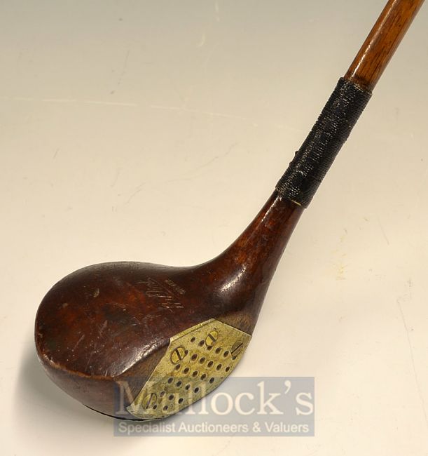 Silver Dint Driver: A dark stained beech wood with silver insert and full sole plate showing the patent number 22777/13-black taped grip and a slight bow in the shaft otherwise very presentable