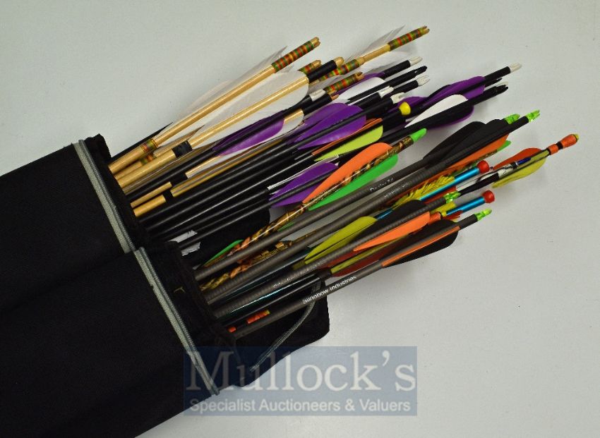 Selection of Archery Arrows – To include Slingbow Industries Dealer 54, AF Carbon 500 together with other carbon, wooden arrows approx 50 housed in 2 storage cases (2)