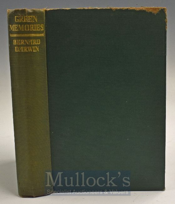 Darwin, Bernard - “Green Memories” 1st c.1928 – original green cloth boards and gilt spine - slight thumb wear to the top of spine, some rubbing along the top of the front board – some discolouration to front and rear end plates – otherwise internally clean hence (G)