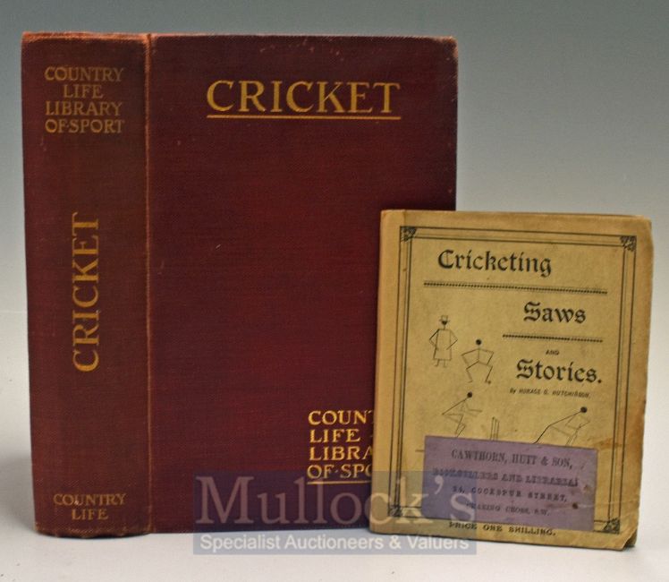 Horace G Hutchinson Cricket Books - Country Life Library of Sport published 1903 together with Cricketing Saws & Stories booklet published 1889 (2)