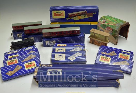 Hornby Dublo 3 Rail Trains – To include 46917 Loco, T.P.O. Mail Van set, coaches, points and track some in original box