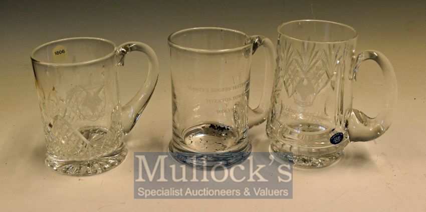 Wolves FC Crystal Tankards – To include Martyn Rodgers Testimonial Tiverton Town v Wolves, Stan Cullis Testimonial Wolves v Aston Villa 9th August 1992 together with a Wolves Tankard (3)