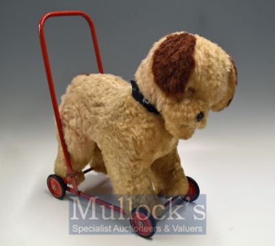 Tri-ang Toys Childs Push A Long Dog – Original fur dog mounted on metal wheeled frame