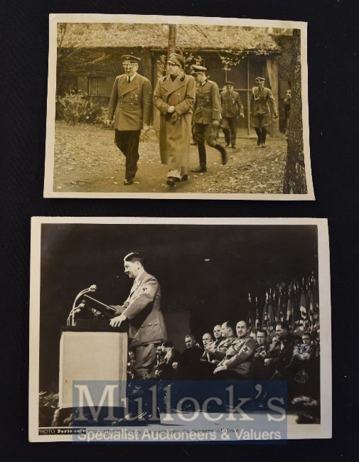 Adolf Hitler with Galeazzo Ciano Photograph in black and white with Heinrich Hoffman stamp to reverse and notes stuck to the reverse, measures 18x13cm approx. together with a photo print of Adolf Hitler ‘Hitler opens the Winter Relief Campaign in black and white, measures 20x15cm approx. (2)
