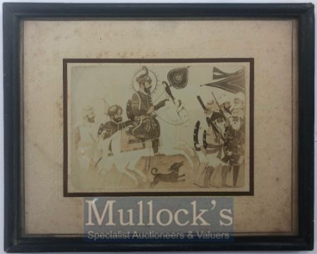India & Punjab – Guru Gobind Singh Framed Picture A rare vintage photograph of a miniature painting of the tenth Sikh Guru, Gur Gobind Singh on horseback, in original vintage frame, measures 26cm x 21cms.