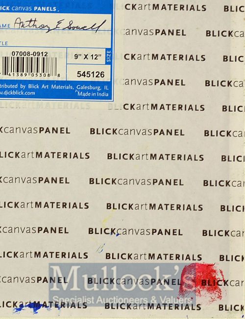American Serial Killer – Original Artwork - Anthony Sowell (b.1959) 2x Oil Paintings – signed to the front Anthony Sowell with thumb print to the reverse, oil on canvas, depicts hand prints, measures 22.9x30.5cm, together with Original Oil Painting – signed to the front Sowell with thumb print to the reverse, oil on canvas, depicts a graveyard with a Sowell tombstone and open grave, measures 22.9x30.5cm (2) Note: Anthony Sowell (b.1959) is an American serial killer, identified by the media as ‘the Cleveland Strangler’. He was arrested in October 2009 after the bodies of 11 women were discovered by Police investigators. Charged with 11 counts of aggravated murder and over 70 counts of rape, kidnapping, tampering with evidence and abuse of a corpse. Sowell currently resides on Death Row.