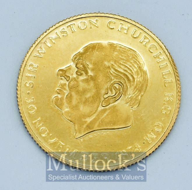 Munzen & Medaillen Gold Medallion Sir Winston Churchill marked 18ct .750, also marked 900 to the edge, 20mm diameter