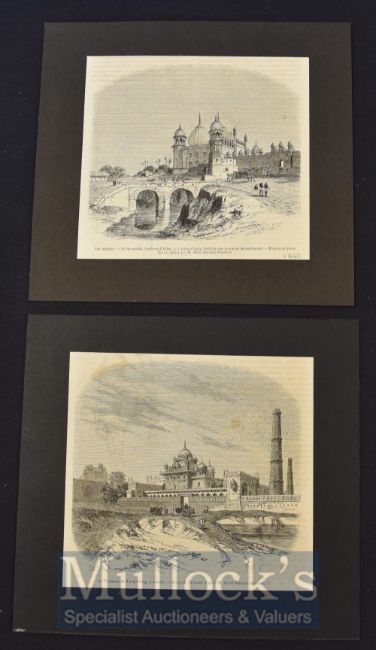India & Punjab – ‘The Tomb of Ranjit Singh, Lahore’ and ‘The Second; Tomb of Akbar, near Agra’ Engravings after M. Alfred Koechlin-Swartz, from a French periodical 1858, measures 16x15cm mounted to card. Koechlin-Swartz was a French artist who worked in India in 1854, mainly creating pencil drawings which he later sold to the illustrated press (2)