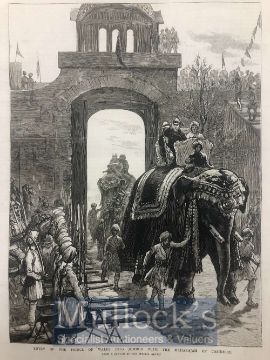 India & Punjab – Maharajah of Kashmir with Prince of Wales An original engraving from The Graphic titled ‘Entry of the Prince of Wales into Jumoo with the Maharajah of Cashmere’ in 1876, Measures approx 40cms x 30cms