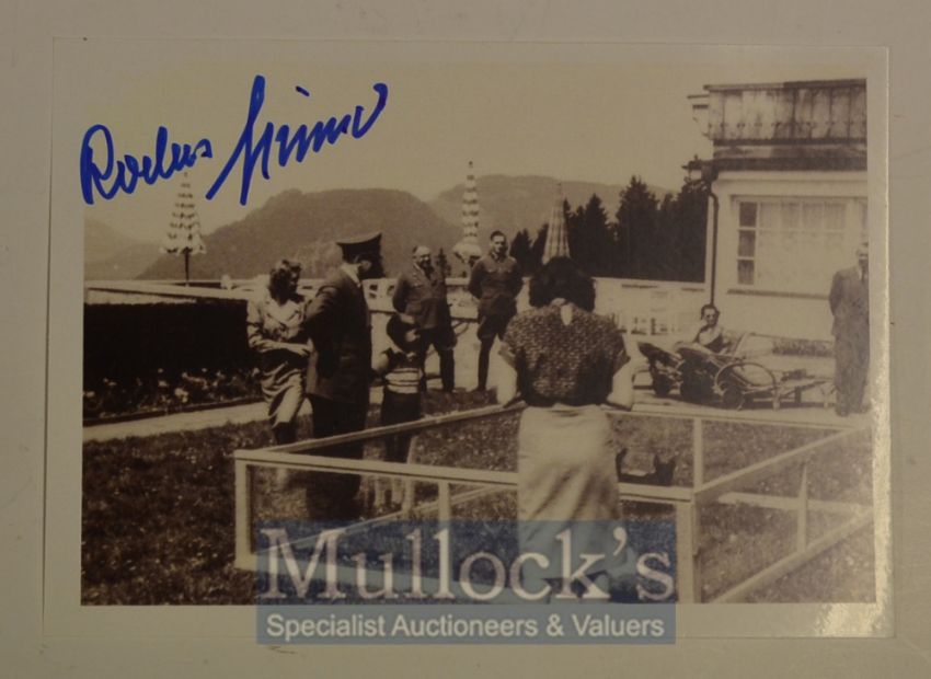 WWII Rochus Misch Signed Print a black and white print depicting the Eagle’s Nest, signed in ink to the front, Misch was a German Sergeant, measures 15x10cm approx. blank to reverse