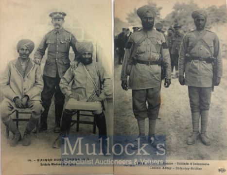 India & Punjab – Indian & Sikh Troops in France Two original vintage First World War postcard of Indian soldiers posing in France, c.1914