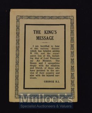 Airship R101 Memoriam Card 1931 With two illustrations of the Airship, one at the mooring mast, the other of the wreckage in northern France. A 4 page folding card, size folded 6¼" ´ 4½".