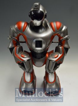 Robosapien RS Media Robot- Has ability to define your own RS Media personality by assigning and editing data files. Now able to play videos and music, display photos and store user data. There’s a full colour LCD display in his chest, speakers and subwoofer embedded in his armour, a USB connector, secure digital memory slot and an MP3 player! Even choreograph a dance routine to your favourite dance track! (Please note: not tested and missing remote control and missing battery cover off one foot)
