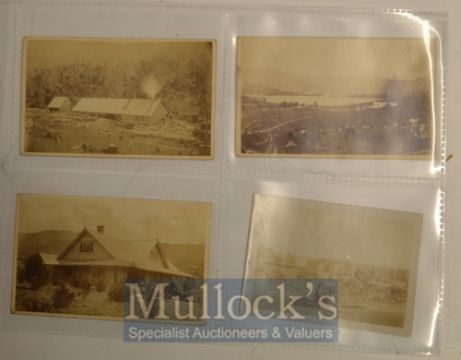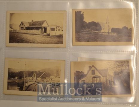 New Zealand – Old Photographs of Akaroa N.Z with information written on the reverse as follows, Post Office & Magistrates Court, St. Peters Church, Wharf, Side View residence E.C.L, Barrys Bay from the Mill, Barrys Bay Saw Mill, Barry’s Bay Residence, plus another not identified, 4"x2.5" Circa 1890s