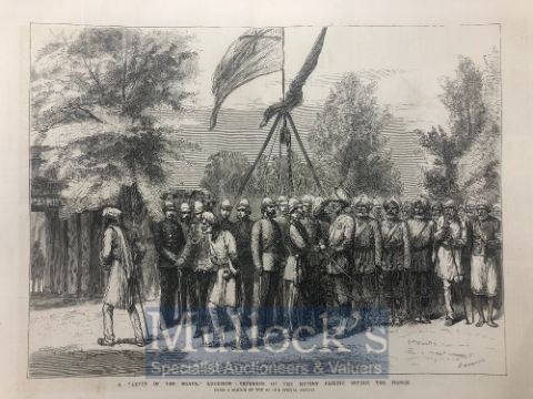 India & Punjab – Indian Mutiny veteran An original engraving from the Graphic titled ‘Lucknow – veterans of the Mutiny Passing Before the Prince of Wales; in 1876, showing Sikh soldiers who fought in the Indian mutiny meet the Prince. Measures approx 40cms x 30cms