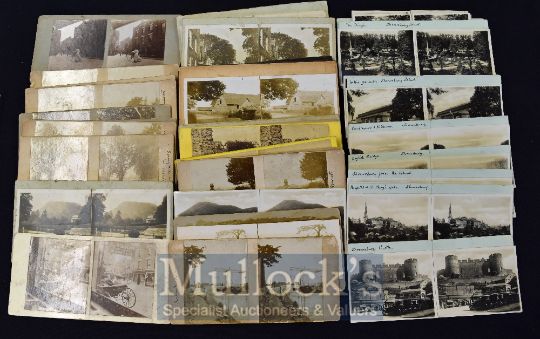 Shropshire Stereoview Cards Selection with various scenes including Market Square Wellington, View from Grinshill, Mill street Wem, Hawkstone, Caradoc Hill Church Stretton, Acton Burnell Castle, and more, condition mixed F/G approx. 35 in total