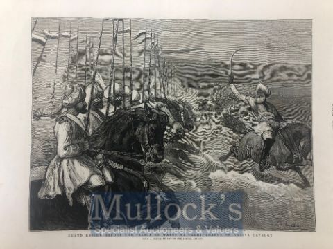 India & Punjab – Sikh Soldiers before the Prince of Wales An original engraving from The Graphic titled ‘Grand Review Before The Prince of Wales at Delhi – Charge of Native cavalry’ in 1876, Measures approx 40cms x 30cms