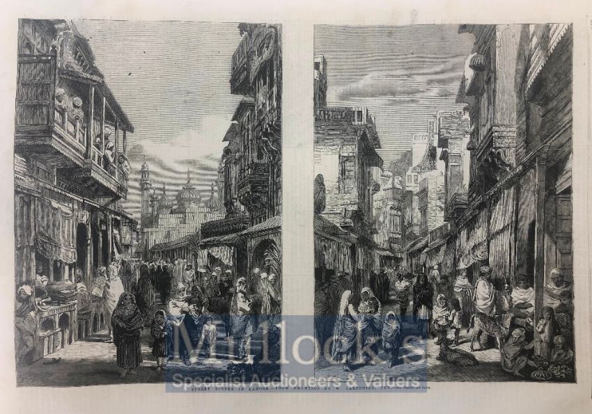 India & Punjab – Street Scenes in Lahore Two original engravings from The ILN titled ‘Street Scenes in Lahore – From a Drawing by W. Carpenter’ dated 1858, Measures approx 40cms x 30cms