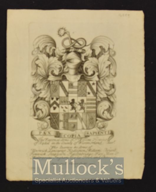 The Paternal Arms of Sr William Fleming of Rydal in the County of Westmorland Bart London Anno 1716 single sheet, engraved by Vander Gucht with fine coat of Arms, printed one side as issued