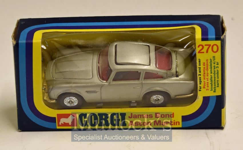 Corgi Toys 270 James Bond Aston Martin – Silver example with 2 bad guys in window box slight crushing to plastic window