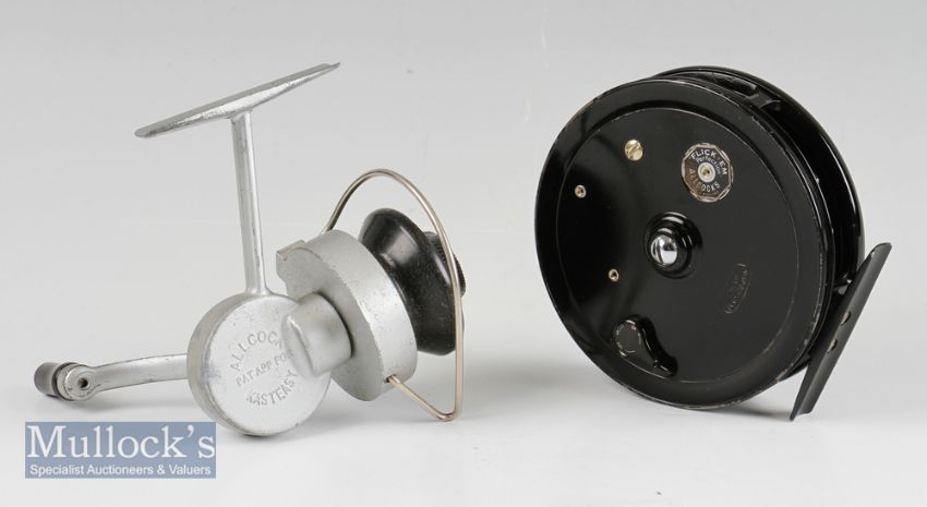 Allcock’s Perfection Flick-em 4” alloy trotting reel. 2 screw cap, face plate brake adjuster, backplate on off check, retaining nearly all the black finish spins well together with Allcock Kasteasy in mob (2)