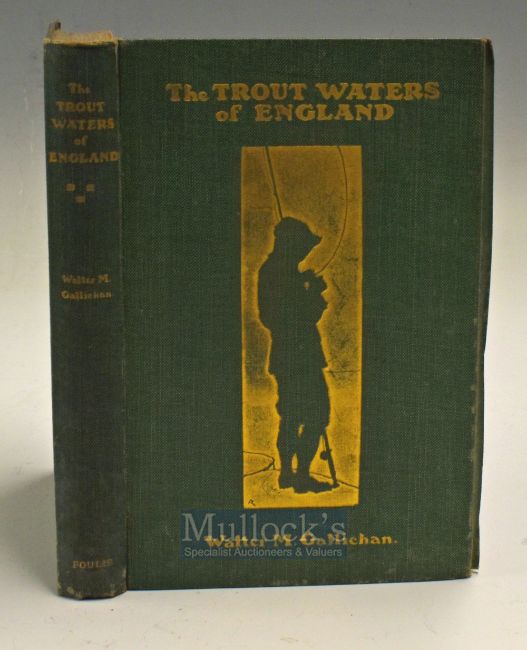 Gallichan W M – The Trout Waters of England, circa 1908, 4 coloured plates of flies original green cloth binding