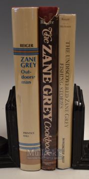 Grey Zane Outdoorsman, The Undiscovered Fishing Stories, Cookbook – 3rd Edition 1972 Outdoorsman, 1983 Undiscovered Fishing Stories, 1976 The Zane Grey Cookbook all with dust jackets (3)