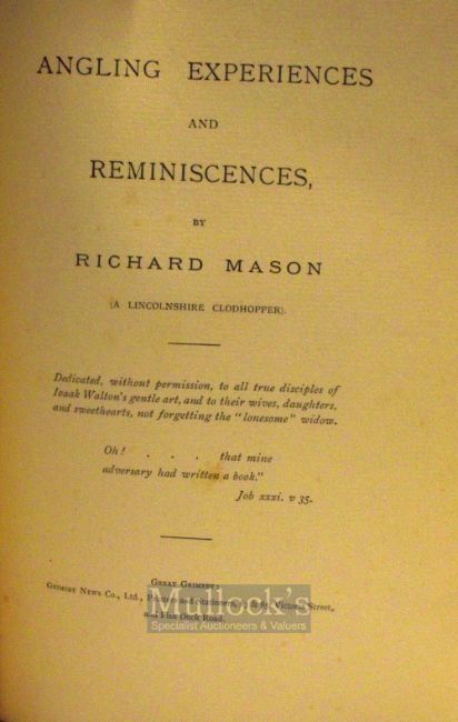 Mason Richard – Angling Experiences and Reminiscences, published Great Grimsby, circa 1909 limited edition 600 copies with signed 2 page letter to R B Marston