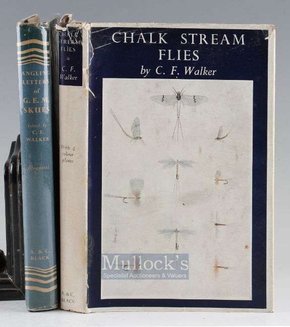 Walker C F – Chalk Strean Flies 1953 1st edition with Angling Letters of G. E. M. Skues edited by Walker 1956 1st edition both with DJ (2)