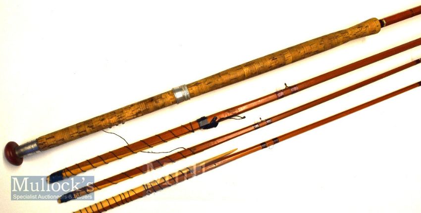 J.S Sharpe Ltd Aberdeen Scottie spliced salmon fly rod - 14ft 3pc c/w spare tip - 24” cork handle ( butt cap loose ) c/w alloy sliding reel fitting – used – in mcb (note one guide loose on spare tip).