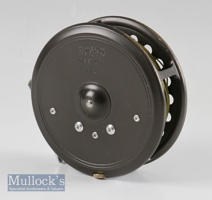 Hardy St John Mk2 alloy fly reel in as new condition, 2 screw latch, black handle, rim tension regulator, smooth alloy foot, retains all original finish, c/w line in maker’s padded zip case.
