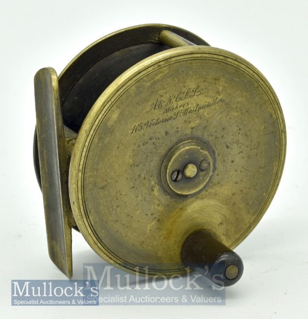 Army and Navy CSL Makers 105 Victoria Street Westminster brass plate wind fly reel - 3” dia constant check and slight play in the plate wind - still very presentable