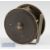 Vic Cowan Maker Edinburgh large brass plate wind salmon reel c. 1885 – 4.25”dia, foot filed at both ends, missing one pillar foot screw which affects the alignment, constant check (catches possibly from the missing screw) – retaining much of the original bronze lacquer finish.
