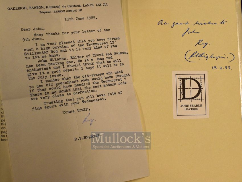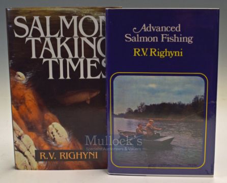 Righyni R V – Advanced Salmon Fishing 1973 1st edition signed by author with letter together with Salmon Taking Times 1966 edition both with dust jackets (2)
