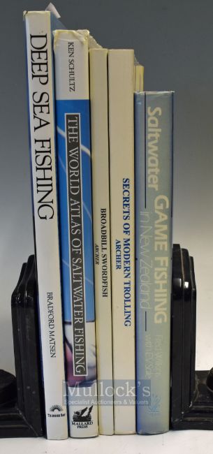 Game Fishing Books – Deep Sea Fishing by Bradford Matsen, The World Atlas of Saltwater Fishing by Ken Schultz, The Art of Catching / The Secreta of Modern Trolling by Archer, Saltwater Game Fishing in New Zealand by Fred Wilkins (5)