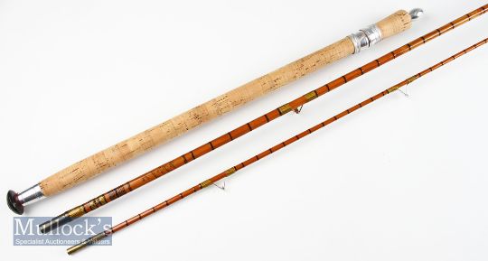 Fine James Aspindale & Son Dalesman Series “The Kimdale” rod – 11ft 3pc with detachable 23” trumpet style cork handle complete with alloy stopper, sliding alloy reel fittings, red Agate lined butt and tip guides appears unused in makers cloth bag