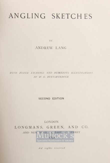 Lang Andrew – Angling Sketches 1891, 2nd edition original green cloth binding
