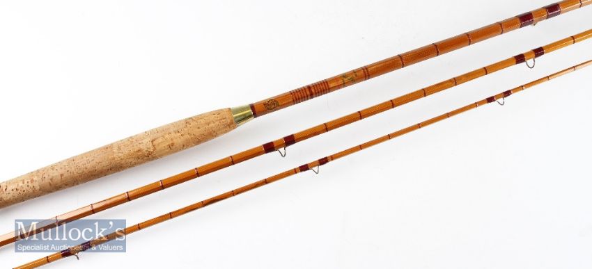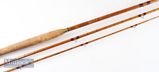 Fine Edgar Sealey “All Round” split cane salmon fly rod: 12ft 3pc with red agate lined butt and tip guides – very lightly soiled cork handle with sliding alloy reel fitting – very lightly used – in mcb – very hard to fault