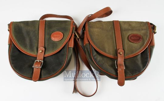 Barbour Wax / Leather Cartridge Bags –Pair Hard wearing wax cotton cartridge bag with leather contrast trim and a heavy duty waterproof Barbour Tartan lining.(2)