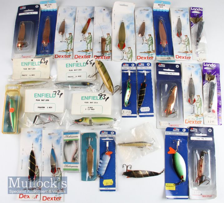 Selection of New Lures, Spoons. To including Abu Garcia, Dexter, B W Sports, Landa, Shakespeare examples all carded (qty)