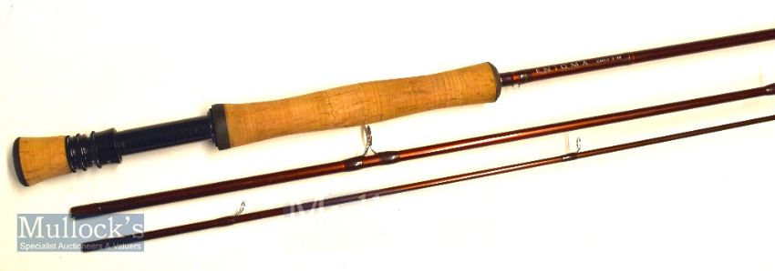 Fine Enigma EMG 3 carbon sea trout fly rod- 9ft 3pc line wt 8# - very lightly soiled cork handle - fitted with black anodised screw locking reel fittings-appears unused in mcb and makers cordura rod tube