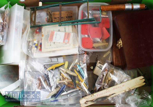 Collection of Fishing Accessories. To including Fly box, line dryer, devons, minnows, spoons, weights, hooks to gut. Inspection needed (Box)