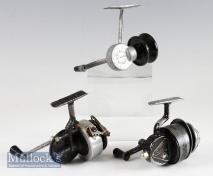 3x assorted spinning reels – early Allcocks small Felton Crosswind with half bale arm; Allcocks Kasteasy with finger style pick up ; and W.T “Triplex=C” with half bale arm Made in Germany – each trunk freely – each have some paint wear. (The Late John Snelson Collection)