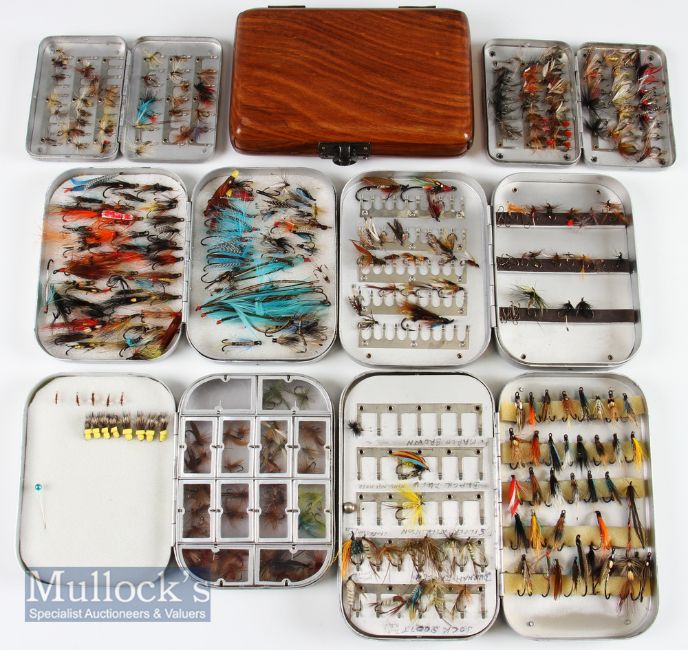 Selection of Wheatley fly boxes. Consisting of various dry flies and others in different size cases together with modern wooden example (7)