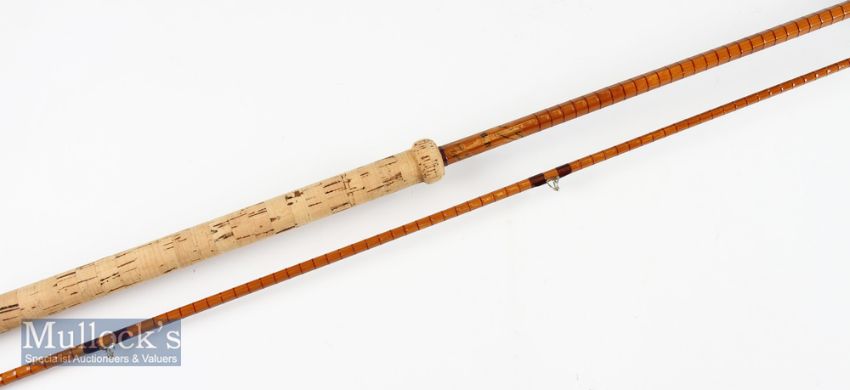 Fine B James and Son England Richard Walker Mk. IV split cane rod - 10’2” two-piece with amber Agate lined butt and tip guides -28” doughnut style cork handle (very clean) comes in tatty makers cloth bag