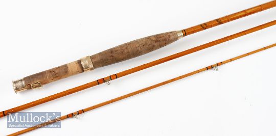 Very Good Hardy “The Hollolight” hollocona trout fly rod – 9ft 3pc clear Agate lined butt and tip guides - ser no H29018 stamped to the gilt anodised sliding reel ring with matching gilt reel seat and butt cap – soiled cigar shaped cork handle otherwise appears unused in MCB