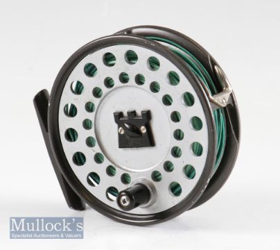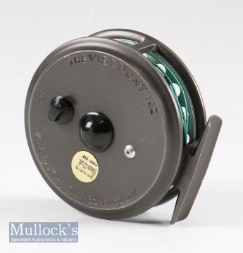 Good Hardy Bros England The Viscount 140 alloy trout fly reel - 3 5/8” dia, with lacquered alloy foot, reversible “U” shaped line guide, c/w line and Air Cel label DT-7-F/S-Wet Tip - constant check, retaining most of the original finish -in small neoprene reel case
